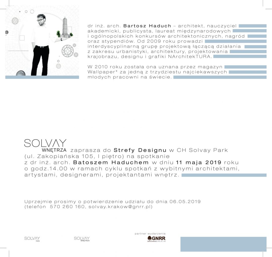11. 05. 2019 - godz. 14.00 Solvay Park - w ramach projektu Solvay Wnętrza, partner wydarzenia GNRR Nieruchomoci.