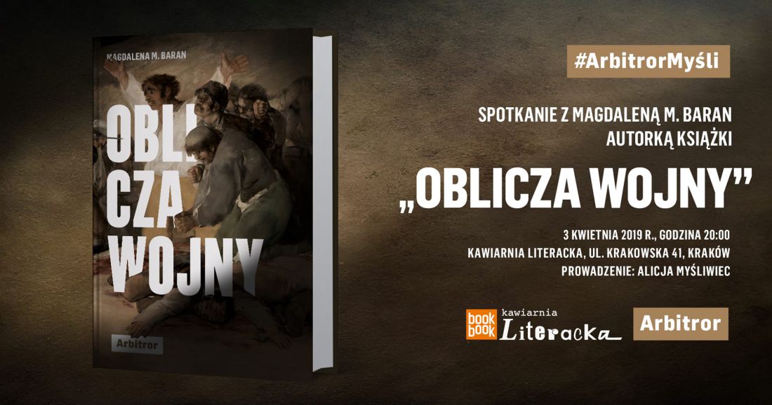 Zapraszamy na spotkanie autorskie z Magdalen M. Baran i jej najnowsz ksik "Oblicza wojny", ktre poprowadzi red. Alicja Myliwiec. Spotkanie odbdzie si w rod 3 kwietnia o godz. 20 w Kawiarnia Literacka przy ul. Krakowskiej 41 w Krakowie.