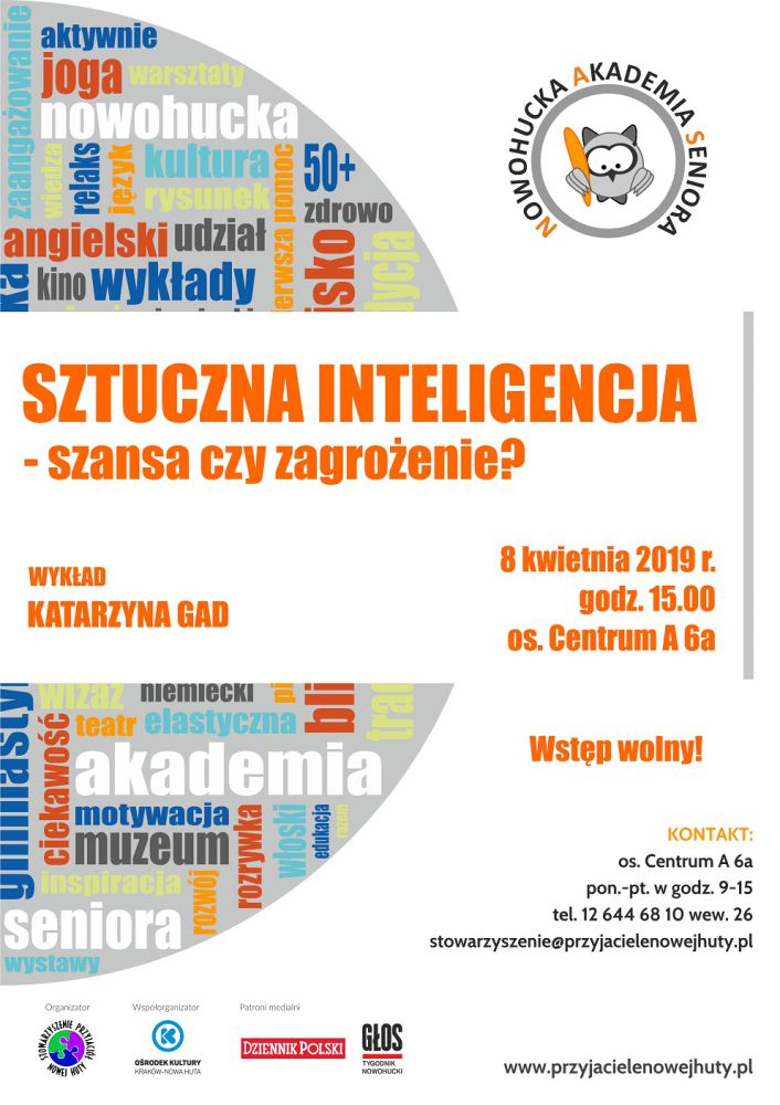 Nowohucka Akademia Seniora (os. Centrum A 6a) zaprasza seniorów 8 kwietnia o godz. 15.00 na wykład powięcony sztucznej inteligencji.