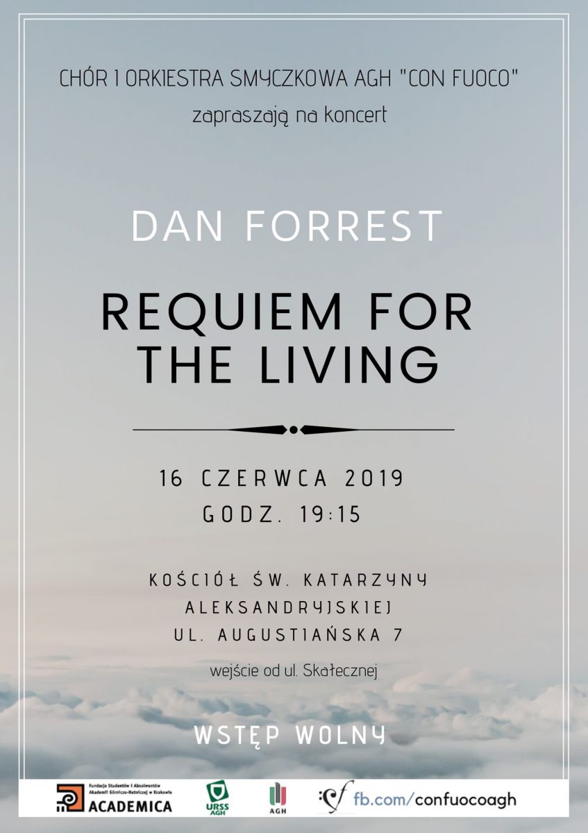 Jak co roku, na zakończenie sezonu artystycznego Chór i Orkiestra Smyczkowa AGH "Con Fuoco" zapraszajš na koncert muzyki klasycznej, podczas którego wykonajš dużš formę muzycznš. W tym roku będzie to "Requiem For The Living" amerykańskiego kompozytora Dana Forresta.