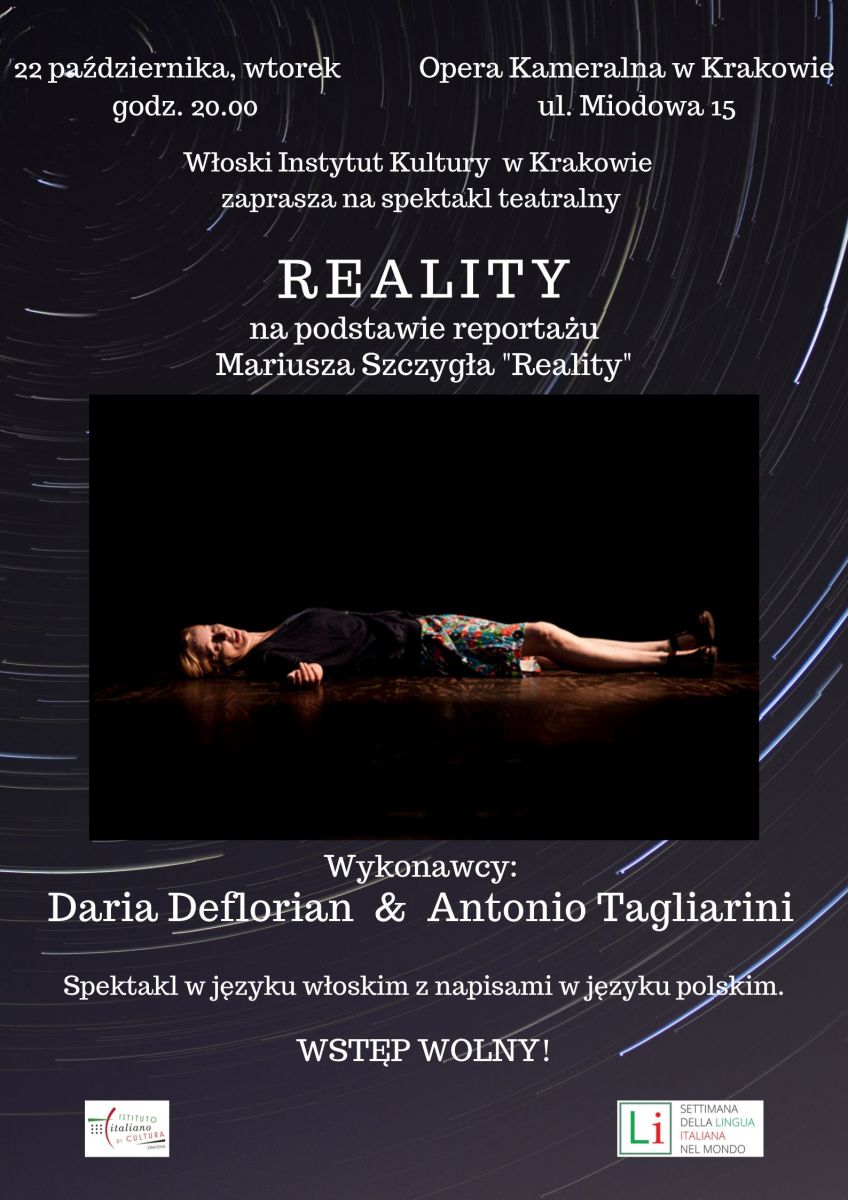 Włoski Instytut Kultury w Krakowie zaprasza na spektakl teatralny REALITY.