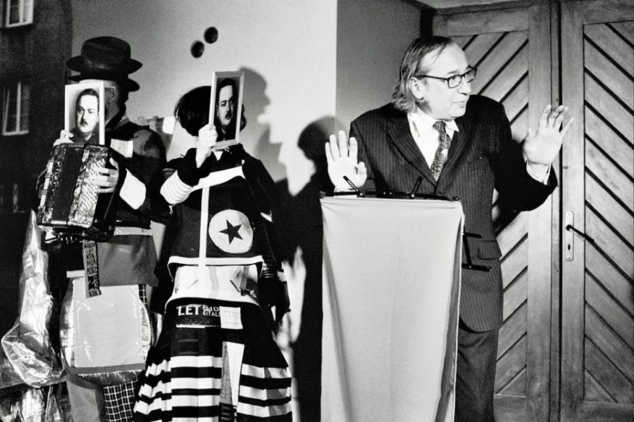 Każdy tekst ma swój smak... a "Dzień..." jest gorzki. Lubię gorzkie sztuki. "Dzień..." jest œwietnie zrobionym spektaklem, bo pokazuje, jak to, co historyczne/ polityczne przemienia się w egzystencjalne. Kiedy życiowe, ludzkie potrzeby ( sławy, uznania, pieniędzy, konkurowania - niskie, niskie...) przenikajš się z grozš historii. Prawda o niej jest celnie oddana: w pomiętych krawatach, papierowych kwiatkach, kostiumach rodem z objazdowego cyrku, parasolu z urwanym drutem. Ale też cieniem na œcianie, głosów zza drzwi, klimacie nowomowy i partyjnego bełkotu.
