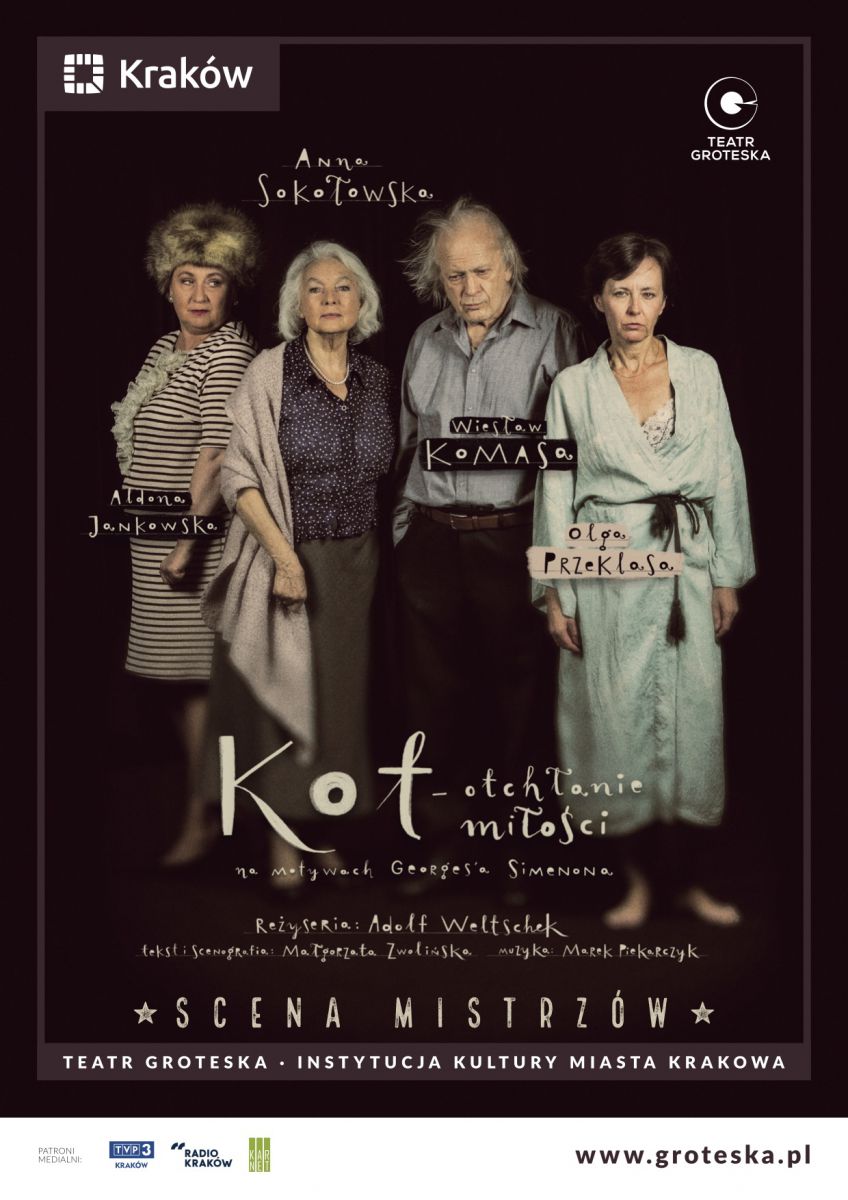 "Kot - otchłanie miłości", to pierwsza własna produkcja Teatru Groteska z cyklu Scena Mistrzów. Tekst Georgesa Simenona stał się inspiracją dla scenariusza napisanego przez Małgorzatę Zwolińską, jest ona także autorką projektu scenografii i kostiumów. Reżyseruje to przedstawienie Adolf Weltschek.