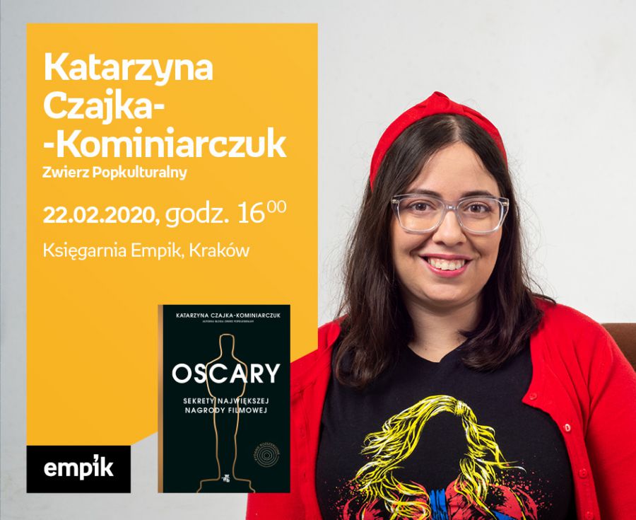 Uroczysta gala wręczenia Oscarów już za nami. Poznaliśmy kolejnych laureatów i największych przegranych amerykańskiego i światowego przemysłu filmowego. Mało kto wie o tej nagrodzie, tyle co Katarzyna Czajka - Kominiarczuk, autorka cieszącego się ogromną popularnością bloga internetowego – „Zwierz Popkulturalny”, a także wydanej właśnie poszerzonej wersji książki – „Oscary. Sekrety największej nagrody filmowej” (Wydawnictwo W.A.B). Na spotkaniu autorskim porozmawiamy nie tylko o kulisach powstania tej publikacji, ale z pewnością poruszymy wiele interesujących kwestii dotyczących świata filmu i seriali.