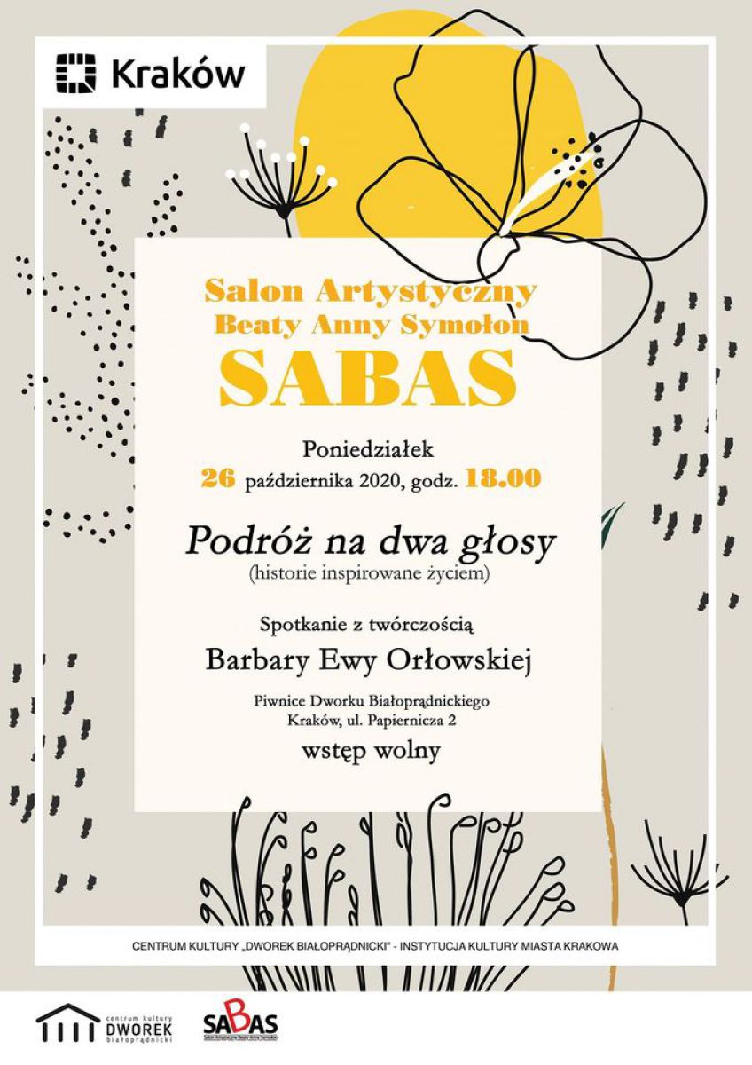 Tym razem gościem Salonu Poetyckiego Beaty Anny Symołon SABAS będzie Barbara Ewa Orłowska.