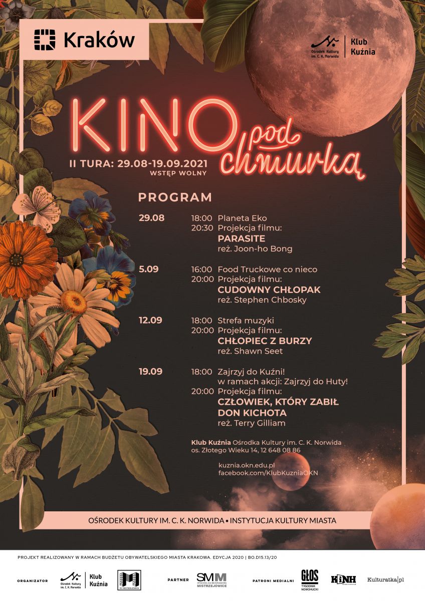 Klub Kunia Orodka Kultury im. C. K. Norwida zaprasza na letnie weekendowe Kino pod chmurkš. Podczas cotygodniowych spotkań przed budynkiem Klubu Kunia odbędš się projekcje filmów, które mieszkańcy dzielnicy wybrali w głosowaniu. Pokazy zostanš poprzedzone wydarzeniami towarzyszšcymi.