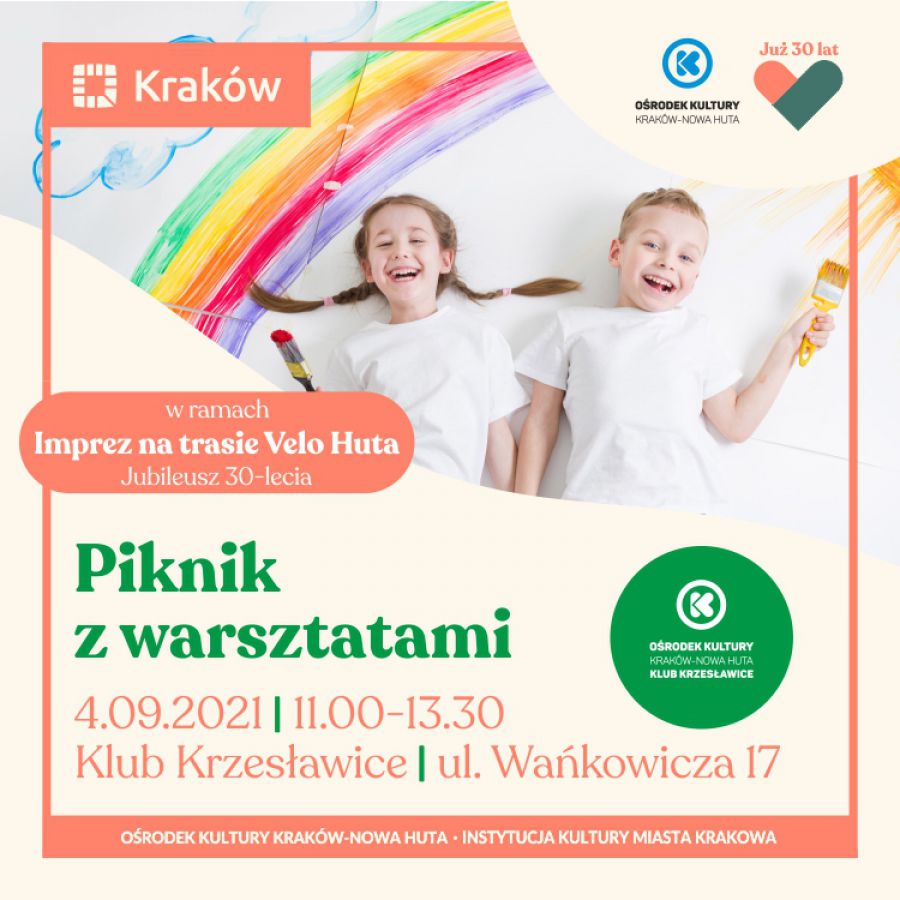 Klub Krzesławice Orodka Kultury Kraków-Nowa Huta (ul. M. Wańkowicza 17) zaprasza na warsztatowy piknik na terenie zielonym przy budynku Klubu. Z okazji obchodzonego w tym roku jubileuszu 30-lecia działalnoci Orodka Kultury Kraków-Nowa Huta w sobotę 4 wrzenia w godz. 11.00-13.30 Instruktorki Klubu zaplanowały warsztaty plastyczne, podczas których powstanš wielkoformatowe prace zwišzane z Orodkiem Kultury i przywiecajšcym mu hasłem Tworzymy to miejsce razem. Wszystkich, którzy przemierzać będš w tym dniu rowerowy szlak Velo Huta, zachęcamy, aby zrobić przystanek przy Klubie, odpoczšć i skorzystać z przygotowanych atrakcji.