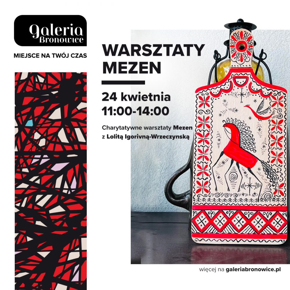 Mezen to popularna w Ukrainie sztuka ludowa o wschodnich korzeniach - jest jak pismo, którego symbole sš jak słowa tworzšce całš opowieć. Technika ta powstała w czasie, gdy nie było jeszcze farb, dlatego wykorzystywano wówczas to, co dawała natura glinę i węgiel. Dlatego też, w nawišzaniu do tradycji, na warsztatach pojawiš się dwa kolory: czerwony i czarny. Mezen to proste malarstwo, które blisko zwišzane jest z przyrodš i życiem niebem, ziemiš i tym, co pomiędzy nimi.