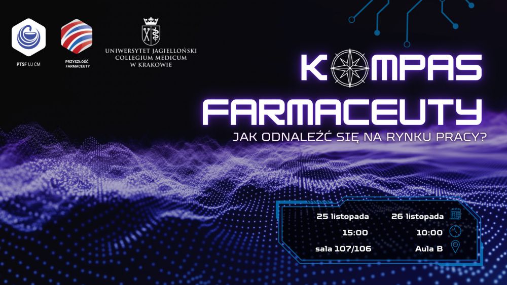 "Kompas Farmaceuty - jak odnaleźć się na rynku pracy?" jest okazją do zaczerpnięcia informacji na temat aktywności, które może wykonać absolwent farmacji w celu znalezienia wymarzonej pracy, jak również może być źródłem zaczerpnięcia motywacji dla przyszłych farmaceutów i nie tylko.