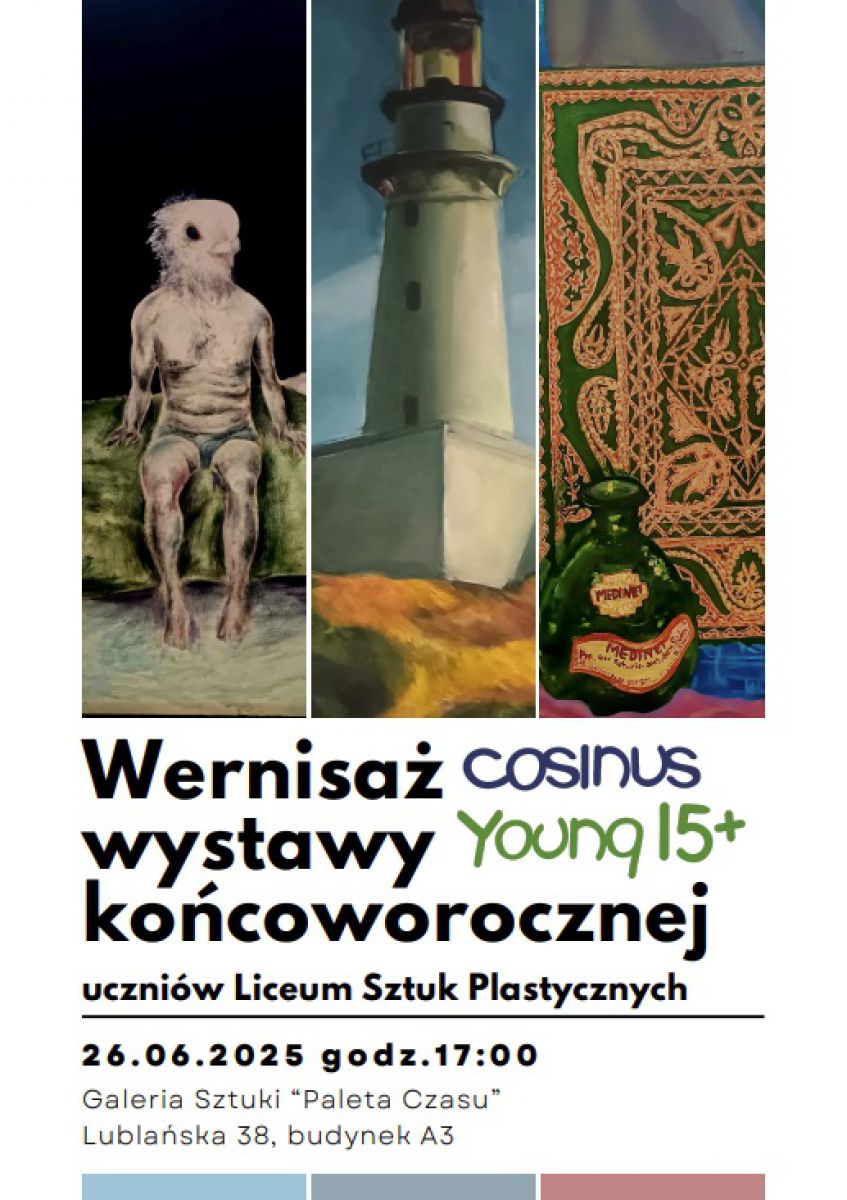 Liceum Sztuk Plastycznych Cosinus w Krakowie ma zaszczyt zaprosić wszystkich miłośników sztuki na wyjątkowe wydarzenie artystyczne – wystawę końcoworoczną prac uczniów, która stanowi podsumowanie ich intensywnej, całorocznej pracy twórczej.