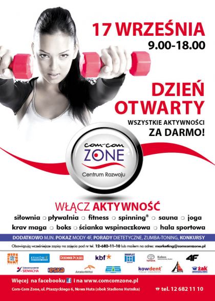 Właœnie wtedy zapraszamy do skorzystania z naszej oferty w sposób całkowicie bezpłatny. Tego dnia wszystkie aktywnoœci, obiekty i zajęcia dostępne będš za darmo. Harmonogram oraz wszelkie szczegóły „dnia otwartego” znajdujš się na www.comcomzone.pl oraz na facebooku.