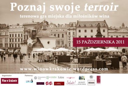Zapraszamy do udziału w grze miejskiej, której celem jest przybliżenie miłonikom wina przestrzeni winiarskiej Krakowa. Pokażemy Wam przyjazne miejsca (winiarnie i sklepy specjalistyczne), gdzie zamawiajšcy kieliszek wina czy kupujšcy butelkę jest mile widzianym klientem a obsługa kompetentnie doradzi. Wskażemy kilka win, które warto spróbować, nie nadwyrężajšc zbytnio smaku i zawartoci portfela. Wszystko to w jedno popołudnie, w sobotę 15 padziernika 2011 w rejonie Starego Miasta w Krakowie.