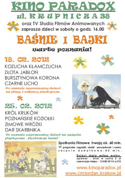 Spotkania filmowe trwajš około 60 minut (w programie zagadki, słodki poczęstunek i film), zajęcia dodatkowe po seansie 45 min.