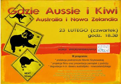 W czwartek, 23 lutego o godz. 18:30 zapraszamy na spotkanie podróżnicze do Centrum Kultury "Ruczaj". Tym razem przeniesiemy się do Australii i Nowej Zelandii. Spotkanie poprowadzi Monika Szybowska - pasjonatka podróży.