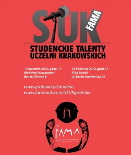 Teatr Groteska oraz Zrzeszenie Studentów Polskich zapraszajš na półfinały Studenckich Talentów Uczelni Krakowskich STUK FAMA 2012, podczas których zaprezentujš się najbardziej utalentowani studenci z całej Małopolski.