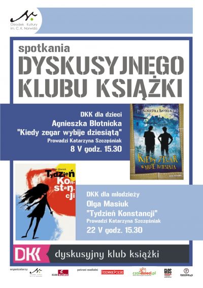 Zapraszamy na otwarte spotkanie dla osób młodych, które lubiš czytać i rozmawiać o ksišżkach. Uczestnikiem Dyskusyjnego Klubu Ksišżki może być każdy. Spotykajšcy się nie muszš prowadzić poważnych dyskusji literackich, ani znać się na literaturze. Najważniejsze jest to, jakie wrażenie wywarła na nich ksišżka.