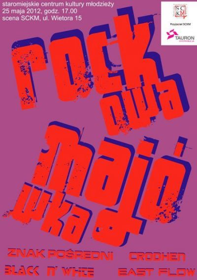 W pitek 25 maja o godz. 17.00 zapraszamy na ROCKOW MAJWK na scenie SCKM, ul. Wietora 15. Zagraj zespoy dziaajce w Staromiejskim Centrum Kultury Modziey: Black n White, Crodhen, East Flow i Znak Poredni.