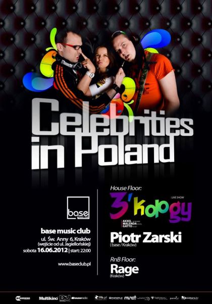 Kolejny miesišc odszedł w niebyt przeszłoci, jednak to co dobre, zawsze powraca! Celebrities in Poland" - ekskluzywna, ekstrawagancka i nietuzinkowa noc w base music club. 19 Maja 2012 roku wybierz własnš drogę, wkrocz na czerwony dywan i stań się częciš tego wydarzeni...a. Fragmentem czego innego, modnego, porywajšcego, budzšcego zmysły i niezwykłego.
