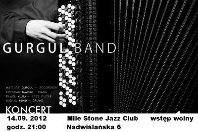 GURGUL BAND powstał w 2011 roku. W jego skład wchodzi czterech muzyków, absolwentów krakowskiej i katowickiej akademii muzycznej: Mateusz Gurgul accordion, Krystian Jaworz piano, Paweł Kluba bass oraz Michał Peiker drums. Mieszanka talentów, fascynacji oraz charakterów wpływa na oryginalnoć muzyki GURGUL BANDU, oscylujšcej pomiędzy jazzem a muzykš filmowš. Obecnie zespół kończy nagrania do pierwszego albumu złożonego wyłšcznie z autorskich kompozycji.