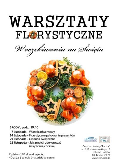 Centrum Kultury "Ruczaj" zaprasza na kolejny cykl warsztatów florystycznych.