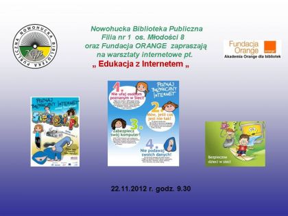 W cyklu: "Dzieci w sieci" w ramach projektu "Akademia Orange dla Bibliotek" odbd si warsztaty internetowe dla dzieci. Nowohucka Biblioteka Publiczna w Krakowie popularyzuje zasady bezpiecznego korzystania z Internetu wrd modych uytkownikw bibliotek organizujc warsztaty i lekcje biblioteczne. Poprzez te dziaania Biblioteka przygotowuje dzieci do wiadomego korzystania ze rodkw masowej komunikacji i uczy umiejtnoci samodzielnego wyboru i segregowania informacji.
