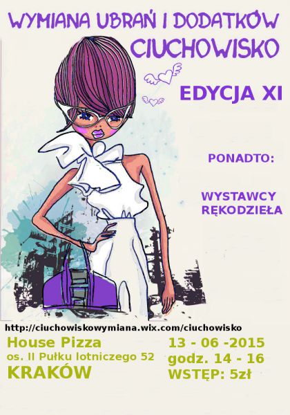 Kolejna edycja szalonej wymiany ubra i dodatkw czyli Krakowskiego Ciuchowiska. Ponownie spotykamy si w House Pizza os. II Puku Lotniczego 51. Na miejscu barek z piciem i jedzonkiem:) Jeli pogoda dopisze to wymian zrobiby na ogrdku :D