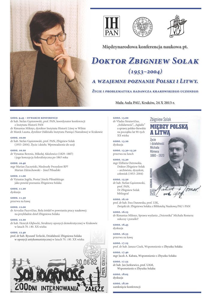 Doktor Zbigniew Solak (1953-2004) a wzajemne poznanie Polski i Litwy. ycie i problematyka badawcza krakowskiego uczonego. Konferencja.