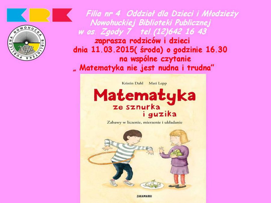 W cyklu: Kroplwka z literatury Wsplne czytanie dla dzieci i rodzicw.