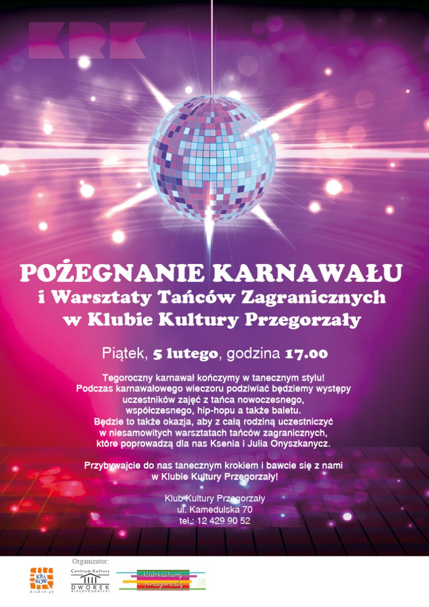 POŻEGNANIE KARNAWAŁU I WARSZTATY TAŃCÓW ZAGRANICZNYCH W KLUBIE KULTURY PRZEGORZAŁY