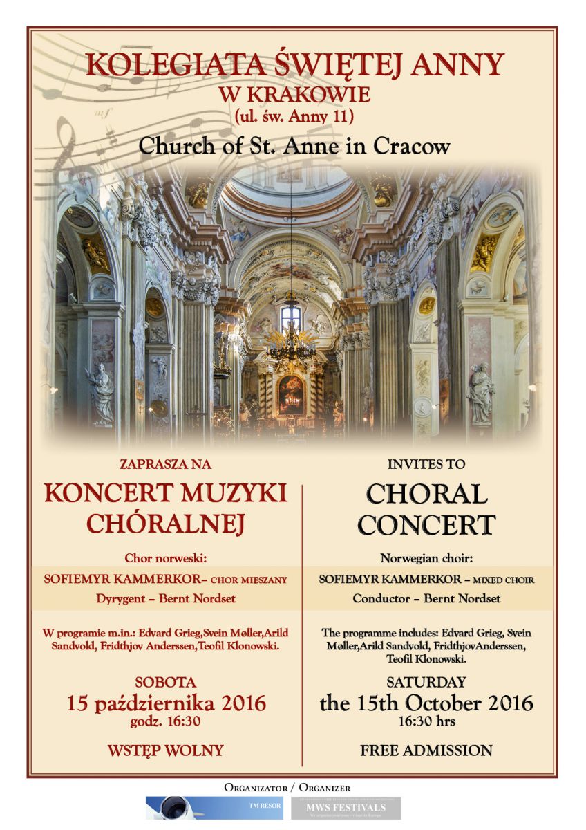 Koncert chru norweskiego SOFIEMYR KAMMERKOR w Kolegiacie w.Anny