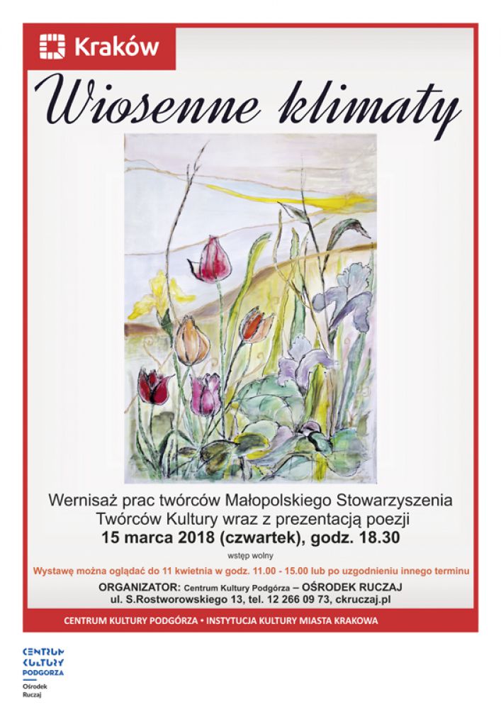 Wiosenne klimaty - wernisaż Małopolskiego Stowarzyszenia Twórców Kultury wraz z prezentacją poezji