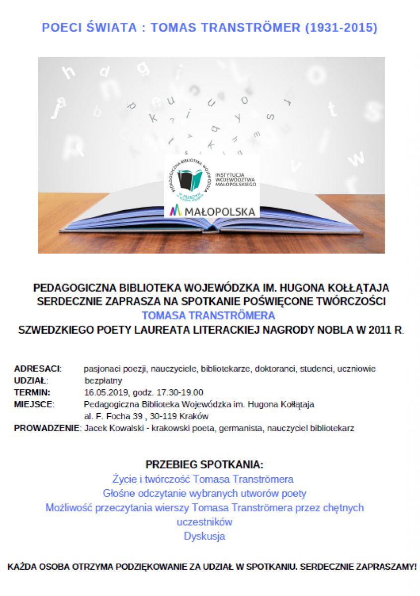 POECI ŚWIATA : TOMAS TRANSTRÖMER (1931-2015)
